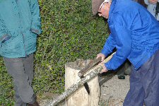 Il utilise pour cela la serpe et frappe sur le « nez du banc ».
